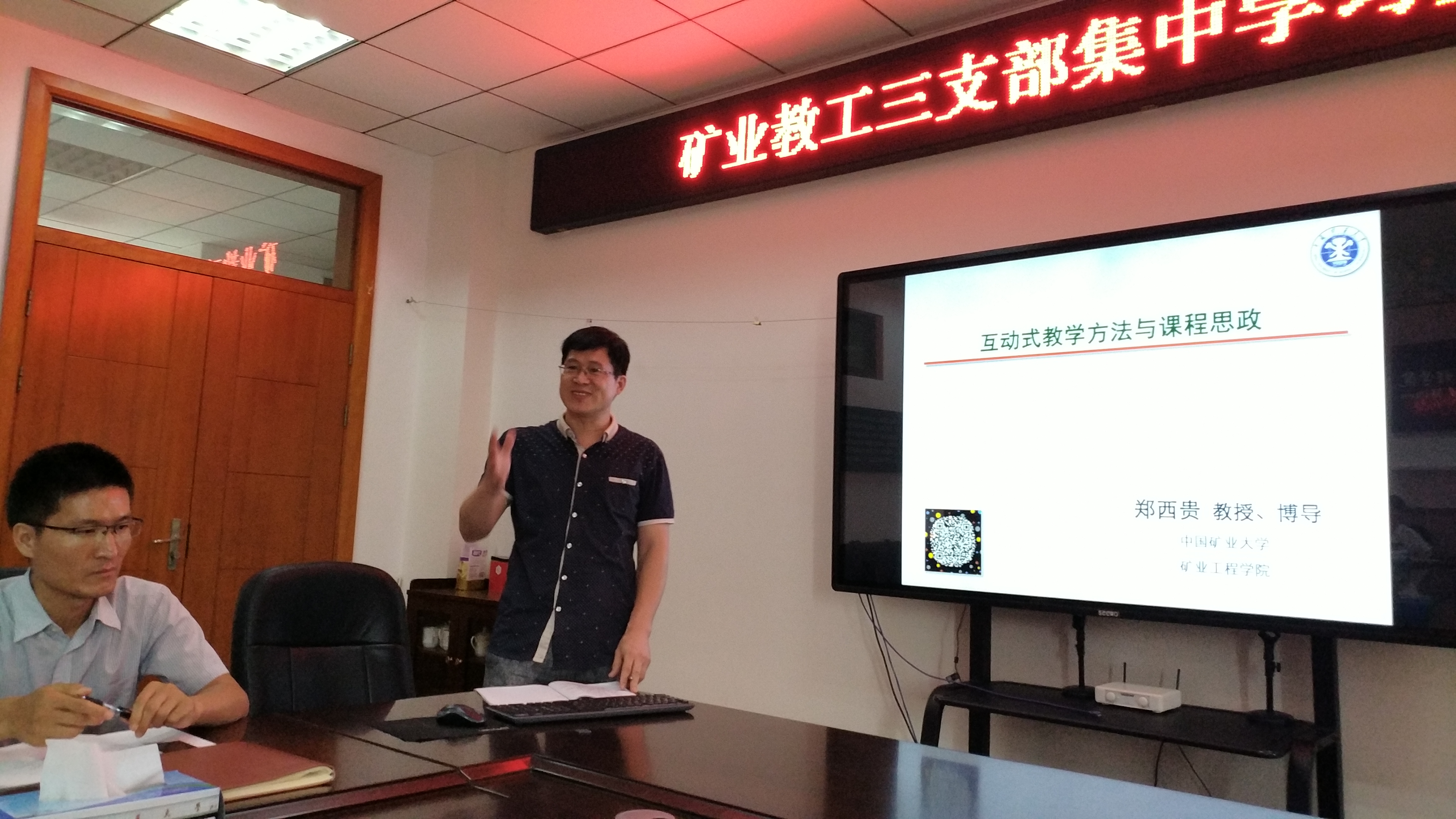大家在提前学习2018年度教书育人楷模先进事迹和收看“春华秋实”教师节文艺晚会基础上,进行了“学习先进典型坚守三尺讲台、潜心立德树人的无私奉献精神,谈谈如何在实际工作中弘扬高尚师德?”的专题发言讨论。与会教师结合自身情况,对教书育人方法、如何弘扬高尚师德,以及基金申报经验进行了深入交流。2018教学贡献奖获得者、教学名师郑西贵教授作了“互动式教学方法与课程思政”的精彩报告,给大家分享了他多年的教学经验,让支部其他教师受益匪浅。