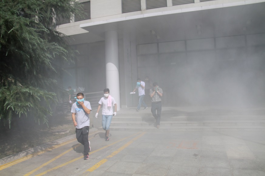 演练前,学院对全体师生进行了逃生安全教育并对演练注意事项做了讲解。15时30分,楼道内烟雾弥漫,随着警报声的拉响, 楼内全体师生从房间内迅速离开,按照事先确定的撤离路线,分楼层、分区域、找到安全出口,有组织、有秩序地疏散到了安全区域,表现出良好的紧急避险意识和突发事件自救能力,达到了预期效果。