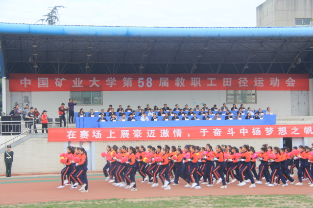 第五十八届教职工田径运动会在文昌校区田径场成功举办。在校校领导及各参赛单位、校党政机关有关职能处室的负责人出席了运动会开幕式并在主席台就座。矿业学院全体教职工积极参加了运动会。