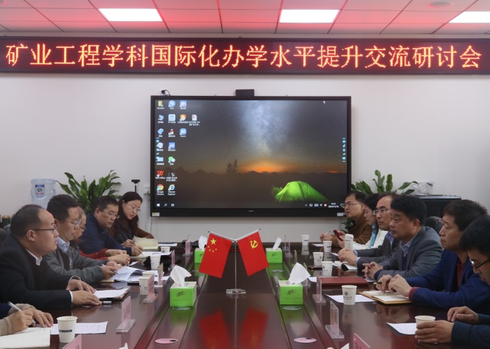 11月19日下午,学院在A509会议室召开“矿业工程学科国际化办学水平提升交流研讨会”。外国语言文化学院党委书记张向东、院长徐剑、副院长祖大庆、研究生公共英语教学部主任崔化、副主任高飞,International Journal of Mining Science and Technology(TOP期刊)学报编辑段瑞云等老师,来我院进行交流研讨。我院党委书记陈新忠、资源工程系主任冯秀娟、采矿工程系副主任周楠、工业工程系副主任李贤功、交通运输系副主任李鑫、学生培养办公室主任赵俊芳、人才与学科工作办公室主任王君,以及两院教师代表参加了会议。副院长马立强主持会议。