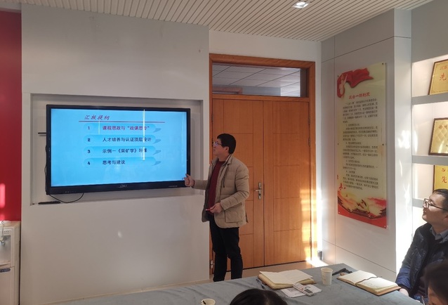 采矿工程系郑西贵主任总结自己多年教学经验作了《采矿工程专业人才培养课程思政的探索与思考》报告,围绕主题与会教师进行了深入的交流讨论,达成广泛共识。
