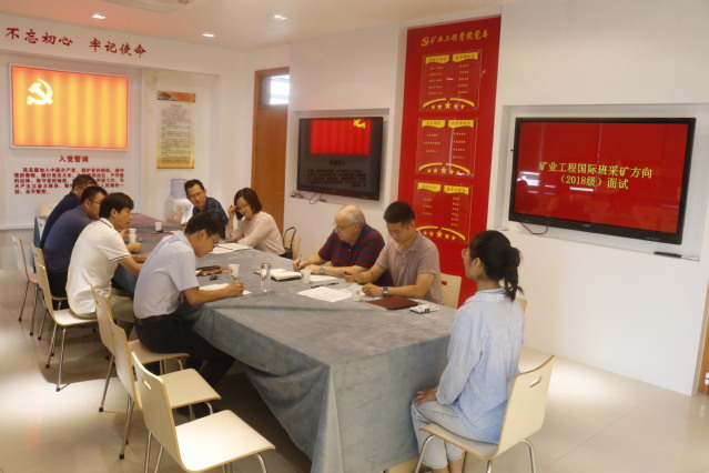 9月12日上午,矿业学院在A602开展 “一流学科建设2018级矿业工程国际班(采矿方向)”学生遴选面试工作,矿业学院教授、原科廷大学西澳矿业学院院长Anthony John Spencer Spearing和矿业工程国际班(采矿方向)遴选工作专家组成员参加了面试,面试由遴选工作专家组组长、采矿工程系主任姚强岭主持。
