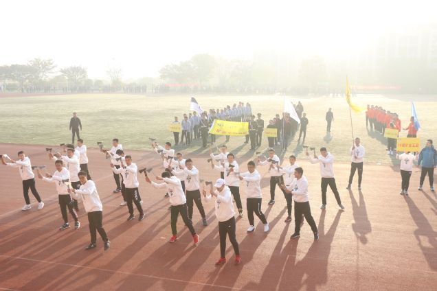院党委书记陈新忠宣布本届运动会开幕。党委副书记畅军亮致开幕辞。他表示,多年来,学院始终高度重视运动体育工作,希望大家能在本届运动会上秉承采矿“三永远”精神,继续传承和发扬学院光荣的体育传统、共同营造体育育人的文化环境,并本次运动会办成文明、团结、胜利的运动会。开幕式上,国旗护卫队护送着学院院旗庄严入场,各班方阵紧随其后。其中2018级本科生、预科生各班级方阵带来了各自的创意表演,着装整齐,活力四射,英姿飒爽,青春激昂。其中预科班学子们身着特色鲜明的民族服饰,伴随欢快流畅的音乐节奏演绎了各自民族的舞蹈,民族风情和韵味完美融合,将开幕式的热烈气氛又推向了另一个高潮。随后,运动会裁判员代表姜麟相、运动员代表周锦杭依次上台宣誓。