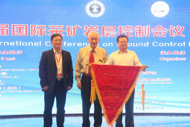 院长张农教授主持闭幕式。闭幕式上,Syd S.Peng院士高度评价了此次会议,并阐述了他个人对于岩层控制和岩石力学的理解,勉励各位学者在采矿岩层控制研究的道路上继续努力。随后,张农教授将会旗传递给第38届国际采矿岩层控制会议(中国)举办单位太原理工大学。