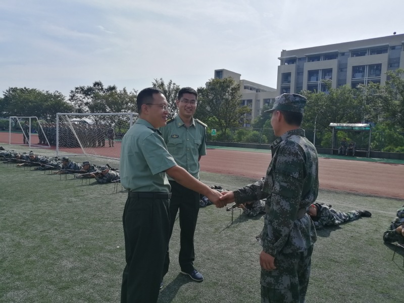 全体新生在东坡运动场进行了打靶训练,院党委副书记畅军亮来到了训练场看望并亲切慰问了学院参训新生、承训教官和带训辅导员,指导学院军训工作。
