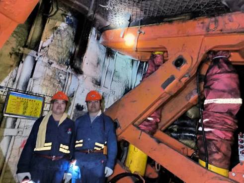 与山东能源新矿内蒙古能源有限公司总工程师在井下参观新式装备