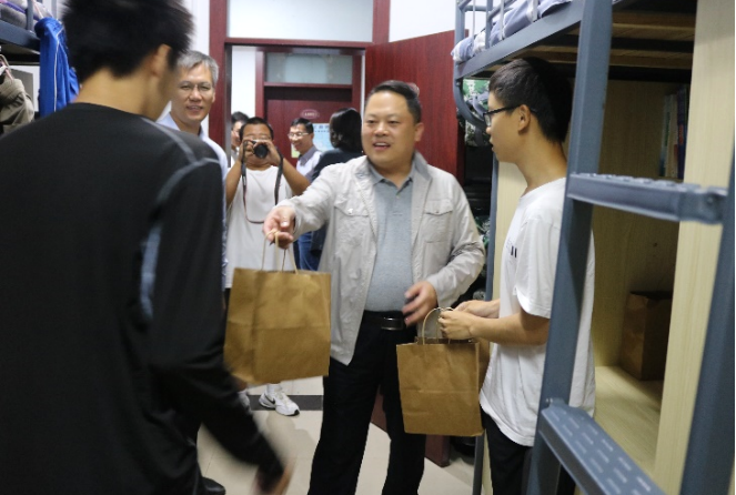 闵涛首先向同学们送上了诚挚的节日祝福。他关心地询问了新同学们的学习和生活适应情况,向同学们介绍了学科发展情况,解读“三永远”精神中“争”的内涵,鼓励同学们及时规划发展方向,树立学习目标,刻苦钻研,孜孜不倦,立志成为能源科技尖兵。随后,学院领导走访学生宿舍,与同学们多方面展开了亲切的交流,深入了解同学们的生活情况和假期安排,并叮嘱大家注意安全,合理安排好学习和休闲活动,并向留校同学送上水果和月饼,共同欢度佳节。