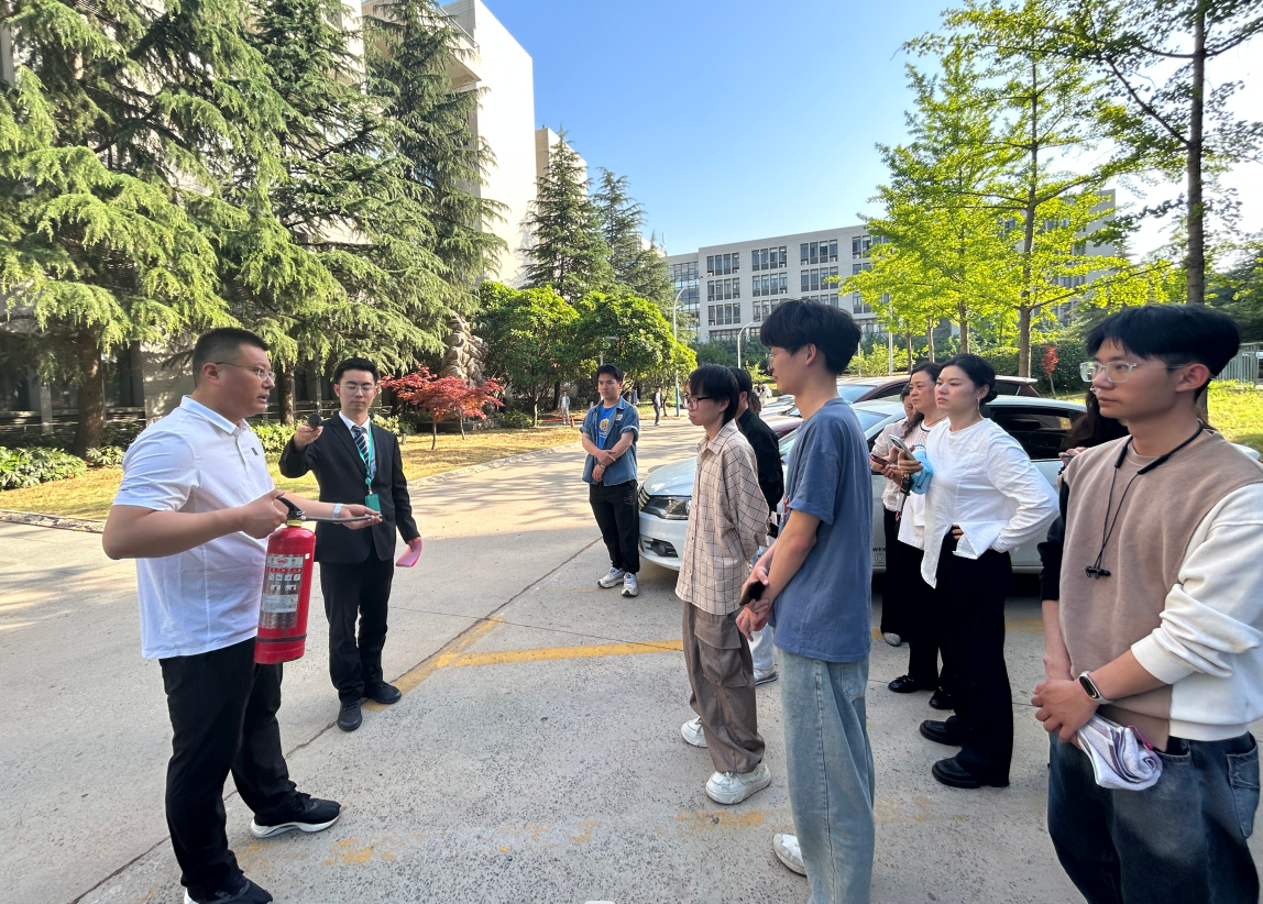 演练结束后,保卫处王锐老师为现场师生科普消防知识、逃生知识,详细介绍了干粉灭火器的功能和使用方法,讲解了“提、拔、握,压”的灭火器使用口诀。