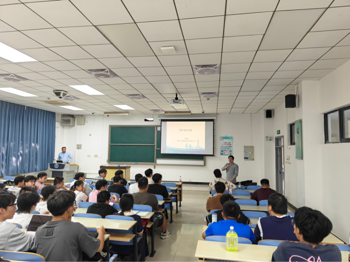 本次讲座面向学院2021级矿业工程国际班(采矿方向)及2022级智能采矿专业的全体同学。王利锋总经理以其深厚的行业背景和新工科教育的独特视角,为同学们开启了一场关于煤矿开采智能化变革的知识盛宴。他首先从宏观层面出发,阐述了国内煤矿开采行业的最新发展趋势,随后深入探讨了智能开采技术的前沿进展。讲座内容涵盖采矿基础知识、多样化开采工艺、大采高技术革新成果、自动化开采技术最新应用、快速掘进技术突破以及硬岩掘进技术的挑战与解决方案等六大核心议题,并结合丰富的实践经验与案例,进行了深入浅出的剖析,使同学们对智能采矿技术的复杂性与创新性有了更为直观与深刻的理解。