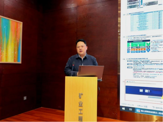 教学副院长袁永围绕强化保障制度建设,提高学生培养质量做了主题发言,他指出,推进拔尖创新人才自主培养是高校立德树人的重要使命,须形成科技创新与人才培养的相互支撑并带动矿业工程学科群高质量发展的有效机制,构建行业特色高校教育科技人才一体化发展方案,抓好以提升课程质量为核心的专业建设;同时,还需坚持培养高水平、高素质研究生的原则,深化研究生培养全过程管理机制改革,对所有类别研究生培养全过程实行严格质量监控,进一步加强规范化管理,提高研究生培养质量;此外,应做好实验教学保障能力建设,做好智慧矿山工业级实景教学中心、智能开采实践实验教学中心的筹建工作。