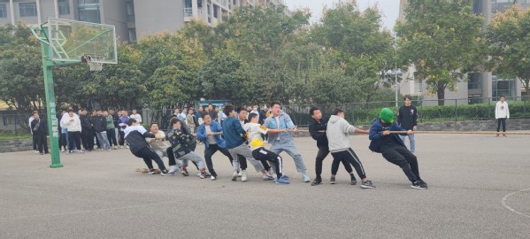 此次运动会共有5个运动项目: 五人六足、扔沙包、解手环、50米接力、拔河。尽管天色不佳,但21级同学们依然兴致盎然,争分夺秒练习比赛项目,认真热身,进行赛前准备。比赛正式开始后,21级同学们跃跃欲试,纷纷报名一试身手。50米接力、拔河项目异常激烈,参赛队员一个个精神抖擞,观众们也随着加油鼓励,场面十分热闹。在扔沙包、五人六足中,大家更是玩得不亦乐乎。整个运动会既充满趣味性,又充满了挑战性,充分发扬了“友谊第一,比赛第二”的精神。最终,8班和10班在五人六足、扔沙包、解手环等项目中发挥出色,并列团队第一。