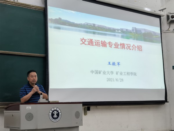 的雄厚资源水平,鼓励同学们积极报选采矿工程。郑西贵老师借2010级校友聚会向同学们介绍我院专业毕业后工作情况,鼓励大家“海阔凭鱼跃,天高任鸟飞”。陆刚老师首先由工业工程的起源、发展及贡献三方面引入并解读了工业工程专业的本质,其次又阐释了此专业的应用范畴、技术体系及校内专业建设,全面且详细地对此专业的相关问题进行了解答。王振军老师从交通运输发展基础、国内交通运输情况、我国交通运输短板项目及国家相关文件引入了专业背景及专业需求,而后从交通运输专业的“方式、方面、方向”三个维度全面阐释了该专业。四位老师宣讲的内容通俗易懂,使同学们能够更清晰地了解相关专业为专业分流选择提供导向。在提问环节中,三位老师耐心地解答了同学们的困惑。