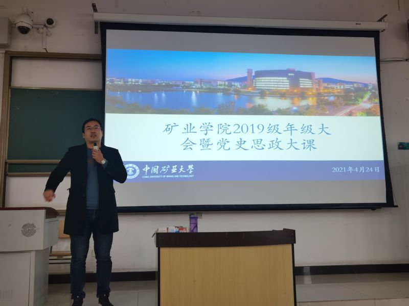 4月24日下午,矿业学院本科2019级辅导员李同欢老师在博二C302举行年级大会暨党史思政大课,2019级兼职辅导员刘璇及全体同学参加此次会议。