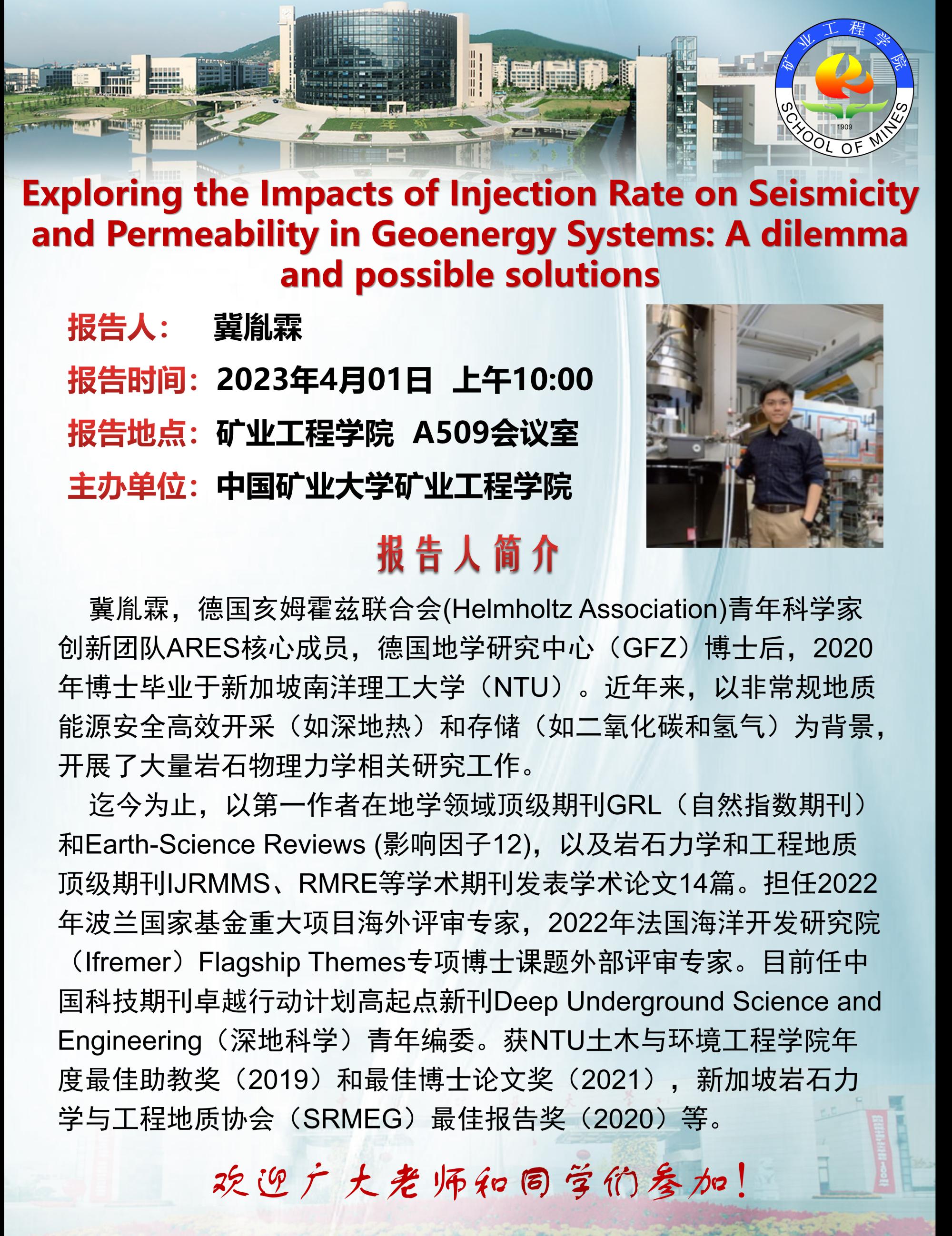 学术会议 欧美无码 - 学科动态 - 学术会议 - 正文 Exploring the Impacts of Injection Rate on Seismicity and Permeability in Geoenergy Systems: A dilemma and possible solutions 作者:办公室新闻发布浏览:时间:2023-03-30