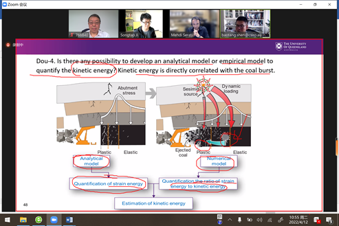 与英国埃克塞特大学坎伯恩矿业学院(Camborne School of Mines, University of Exeter)联合召开的网络学术研讨会。窦林名教授和李许伟副教授简要介绍了团队在冲击矿压监测预警与防治方面的系列研究成果和应用情况,并与John Coggan教授、Hylke J. Glass教授和James Hickey副教授就顶板岩层预裂效果探测技术、岩石动力行为数值模拟、岩层应力分布状态的震动波反演技术等进行了深入交流。蔡武教授就其在伦敦帝国理工学院的博士后研究内容进行了简要的介绍与交流。同时,双方同意后续就共同感兴趣的研究课题一起申请中英政府间合作项目和企业项目,积极推进两校科研合作。此外,窦林名教授也邀请参加研讨会的埃克塞特大学相关教授参加计划于今年10月份在我校召开的第六届煤矿动力灾害国际学术研讨会。