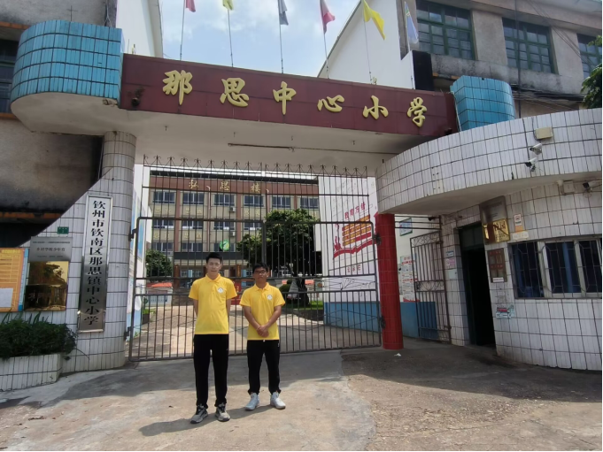 25 日上午 10 点,实践团与钦南区相关人员进行交接后,一同前往那思小学。抵达那思镇后,团队选择步行入镇,考察当地人文环境。进入小学后,实践团与校方进行交流,对校园内各处进行志愿清洁,帮助清扫楼道,厕所,教室等地方。经过了解,那思镇中心小学设施完备,拥有多媒体教室、各类球场等。校园绿化良好,地形错落有致,景色宜人。