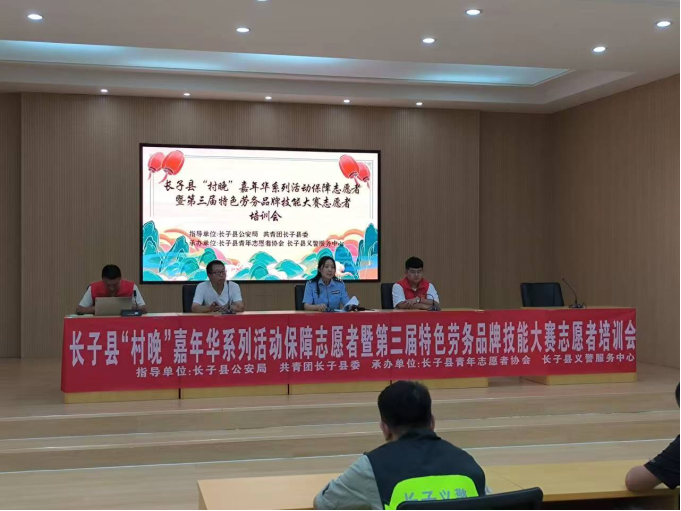 实践团成员参加了长子县“村晚”嘉年华系列活动保障志愿者暨第三届特色劳务品牌技能大赛志愿者培训会