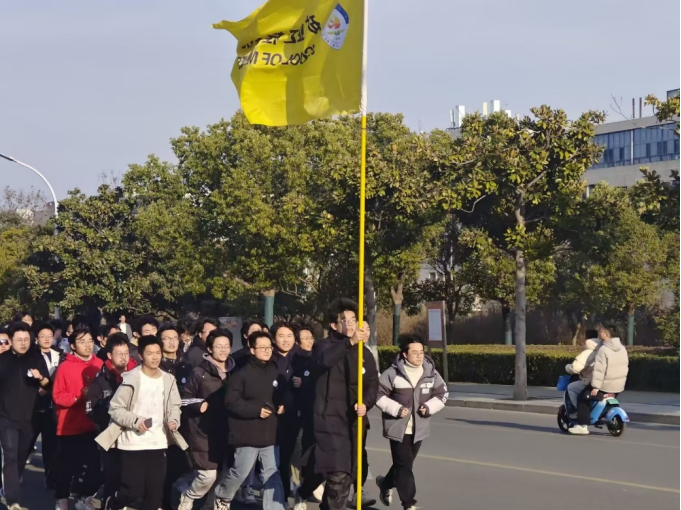 的选手们迅速冲出起跑线,开始了长达四公里的挑战。比赛过程中,他们不仅展示了出色的体能和顽强的毅力,更以实际行动诠释了“三永远”精神。每一位选手都在赛道上拼尽全力,勇往直前,展现了积极向上的竞技风貌。此外,比赛还吸引了六十位普及组同学参与,他们步伐一致、口号响亮。在他们的带动下,现场气氛热烈非凡,观众席上不时传来阵阵加油和助威的声音,欢呼与掌声交织在一起,为每一位参赛者送上最真挚的支持和鼓励。