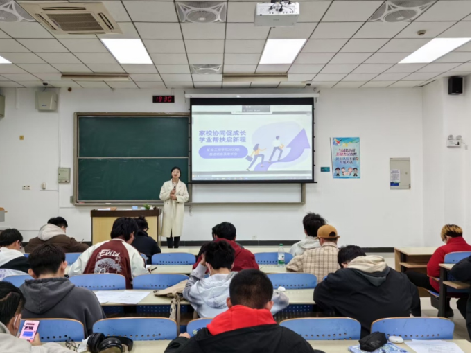 2023级奋进班会及家长会在博3-A103召开,会议由2023级辅导员王静姝主持,奋进班群体同学、23级学生党员以及各班学习委员到场参与,奋进班全体家长通过腾讯会议线上与会。
